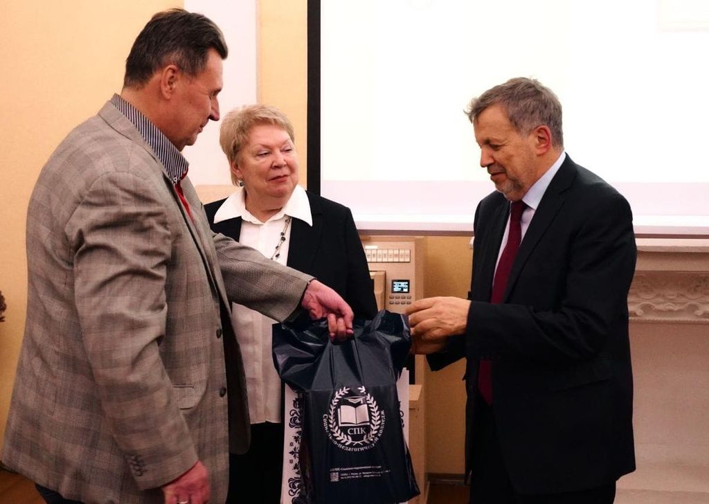 Руководитель Библиотеки имени К.Д. Ушинского В.Ю. Сурвилло рассказал гостям торжественного собрания об истории создания библиотеки и основных направлениях её работы сегодня. Он отметил, что основанная в 1925 году библиотека обладает полным собранием учебников, методических пособий и учебных программ для всех типов учебных заведений среднего и педагогического образования, начиная с XIX века по настоящее время.