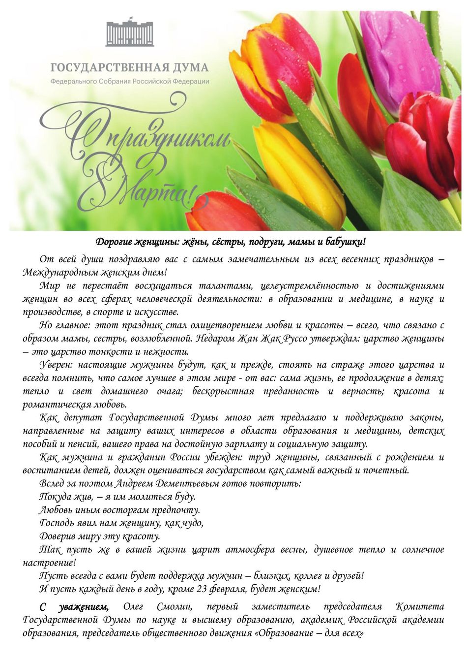 Официальный сайт СПК: поздравления с 8 марта 2026